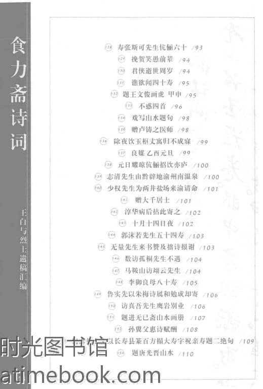 | 网盘路径:/时光图书馆珍藏系列/书籍文件/老图书/《食力斋诗词:王白与烈士遗稿汇编》电子版合集.db | ||
