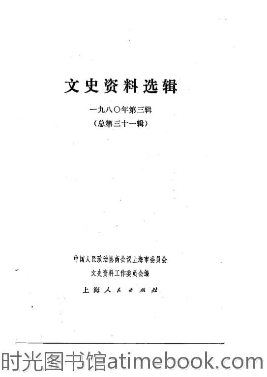 | 网盘路径:/时光图书馆珍藏系列/书籍文件/老图书/《上海文史资料选辑_1980年第3辑_总第31辑》电子版合集.db | ||