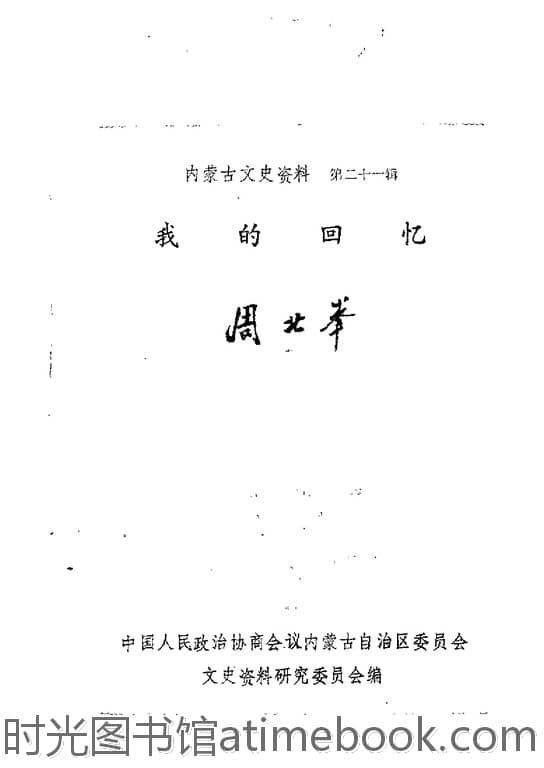 | 网盘路径:/时光图书馆珍藏系列/书籍文件/老图书/《内蒙古文史资料_第21辑_(周北峰:我的回忆)》电子版合集.db | ||