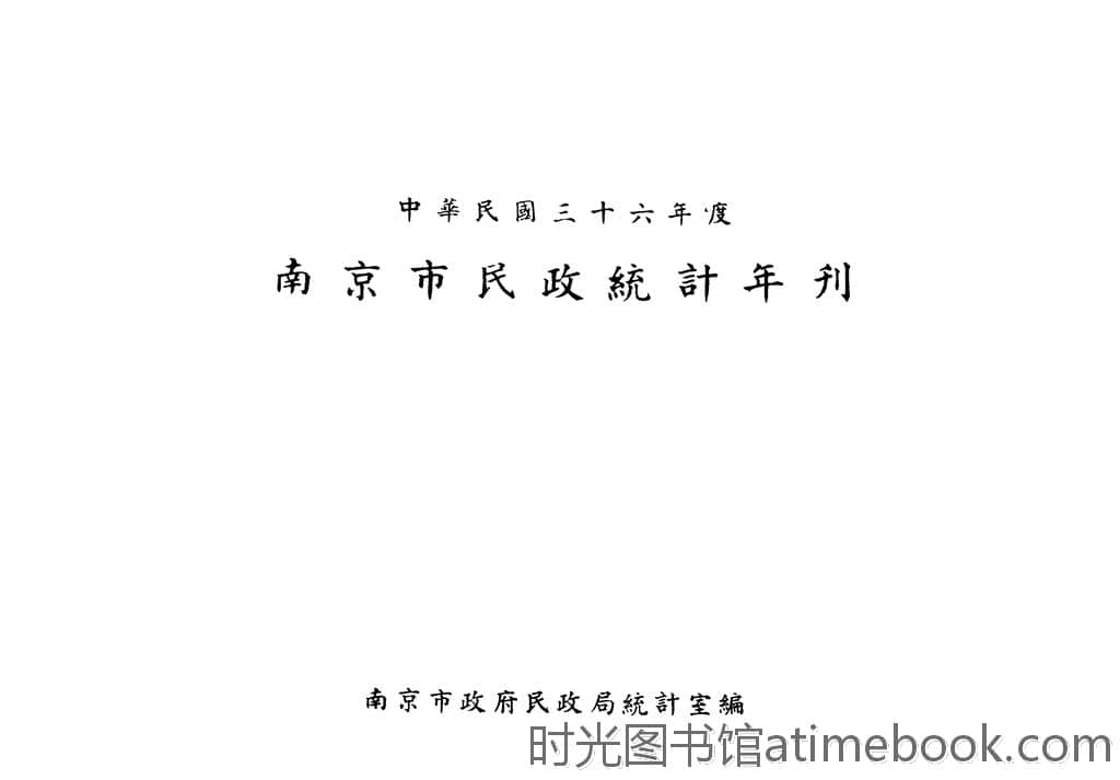 | 网盘路径:/时光图书馆珍藏系列/书籍文件/老图书/《南京市民政统计年刊_中华民国三十六年度》电子版合集.db | ||