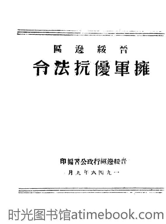 | 网盘路径:/时光图书馆珍藏系列/书籍文件/老图书/《晋绥边区拥军优抗法令》电子版合集.db | ||