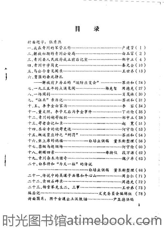 | 网盘路径:/时光图书馆珍藏系列/书籍文件/老图书/《青川县文史资料1985年第1期》电子版合集.db | ||