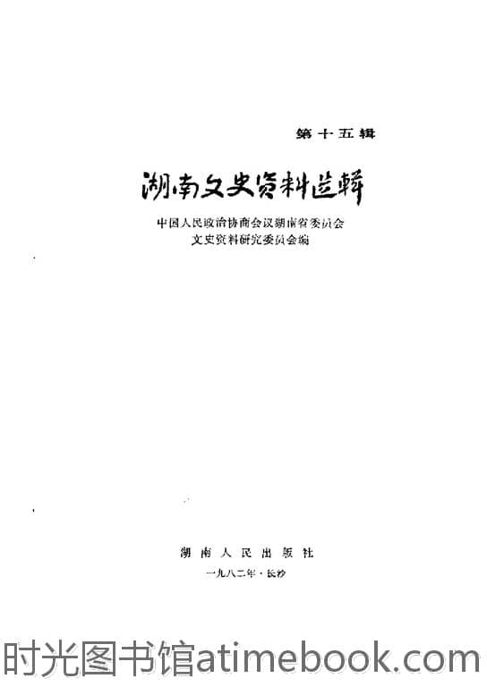 | 网盘路径:/时光图书馆珍藏系列/书籍文件/老图书/《湖南文史资料选辑_第15辑》电子版合集.db | ||