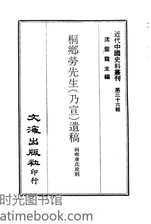 | 网盘路径:/时光图书馆珍藏系列/书籍文件/老图书/《桐乡劳先生(乃宣)遗稿》电子版合集.db | ||