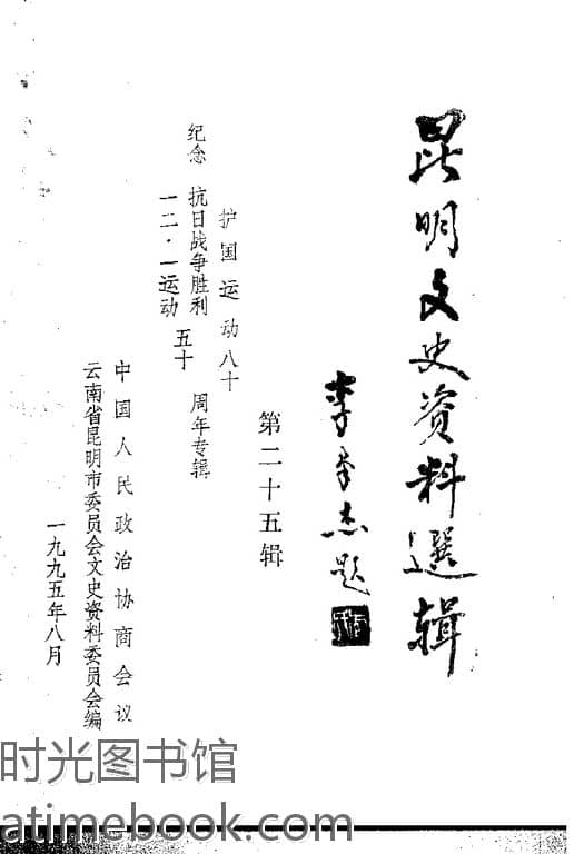| 网盘路径:/时光图书馆珍藏系列/书籍文件/老图书/《昆明文史资料选辑_第25辑》电子版合集.db | ||