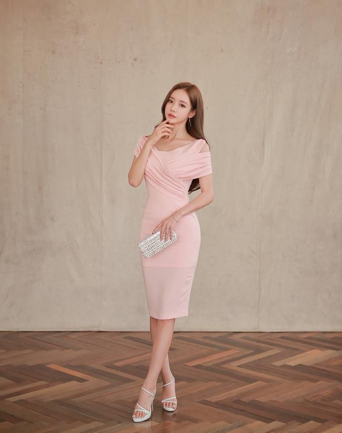 奥黛丽粉嫩时尚层叠分衩衣裙