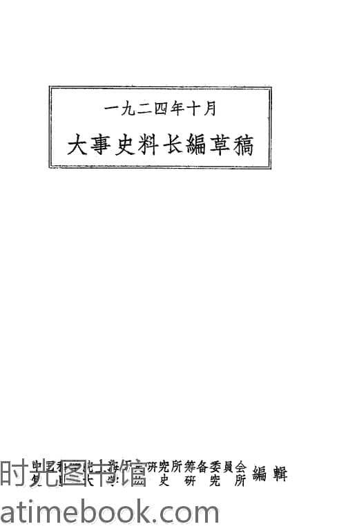 | 网盘路径:/时光图书馆珍藏系列/书籍文件/老图书/《大事史料长编草稿(一九二四年十月)》电子版合集.db | ||