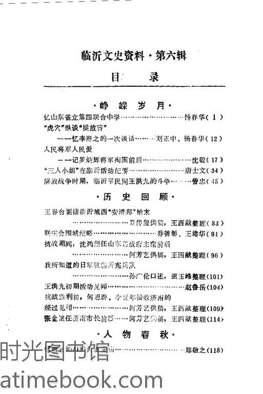 | 网盘路径:/时光图书馆珍藏系列/书籍文件/老图书/《临沂文史资料_第6辑》电子版合集.db | ||