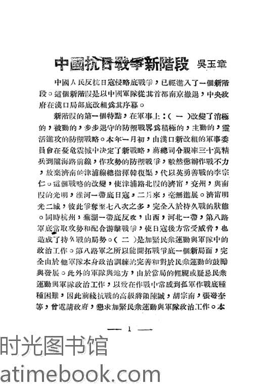 | 网盘路径:/时光图书馆珍藏系列/书籍文件/老图书/《中日战争的新阶段》电子版合集.db | ||
