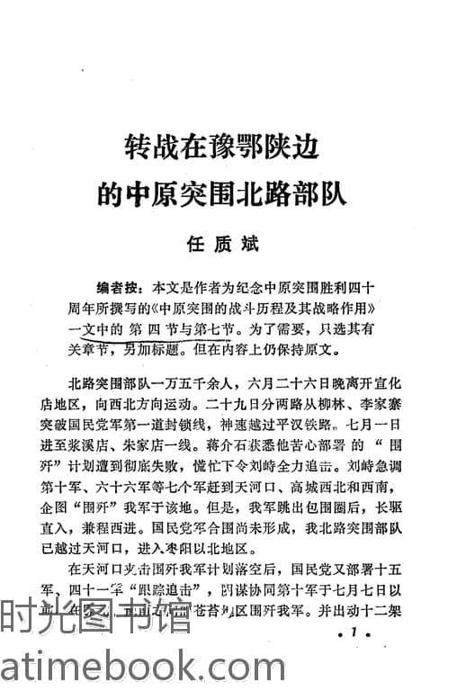 | 网盘路径:/时光图书馆珍藏系列/书籍文件/老图书/《中原突围到豫西(豫鄂陕根据地时期)》电子版合集.db | ||