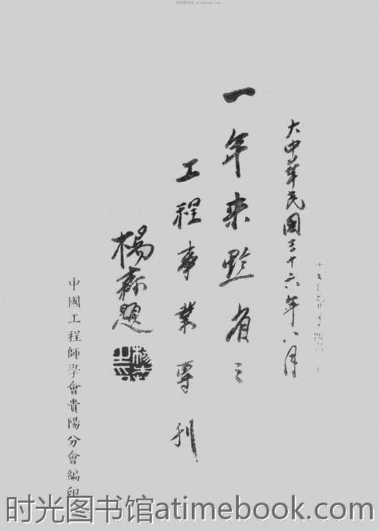| 网盘路径:/时光图书馆珍藏系列/书籍文件/老图书/《一年来黔省之工程事业专刊》电子版合集.db | ||