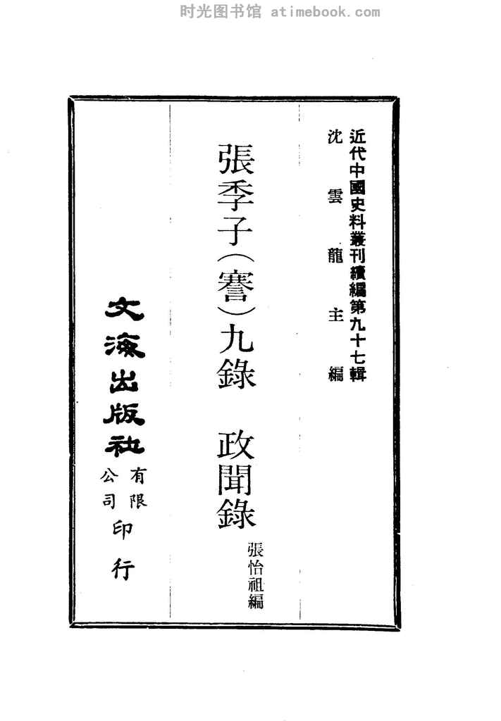 | 网盘路径:/时光图书馆珍藏系列/书籍文件/老图书/《张季子(謇)九录_政闻录》电子版合集.db | ||