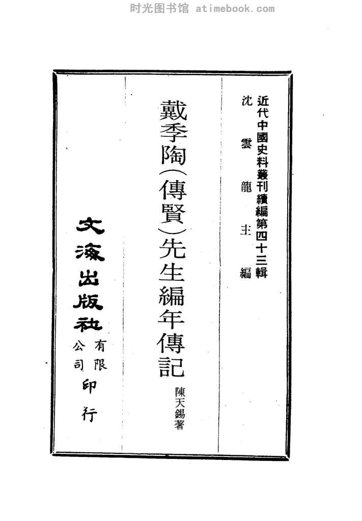 | 网盘路径:/时光图书馆珍藏系列/书籍文件/老图书/《戴季陶(传贤)先生编年传记》电子版合集.db | ||