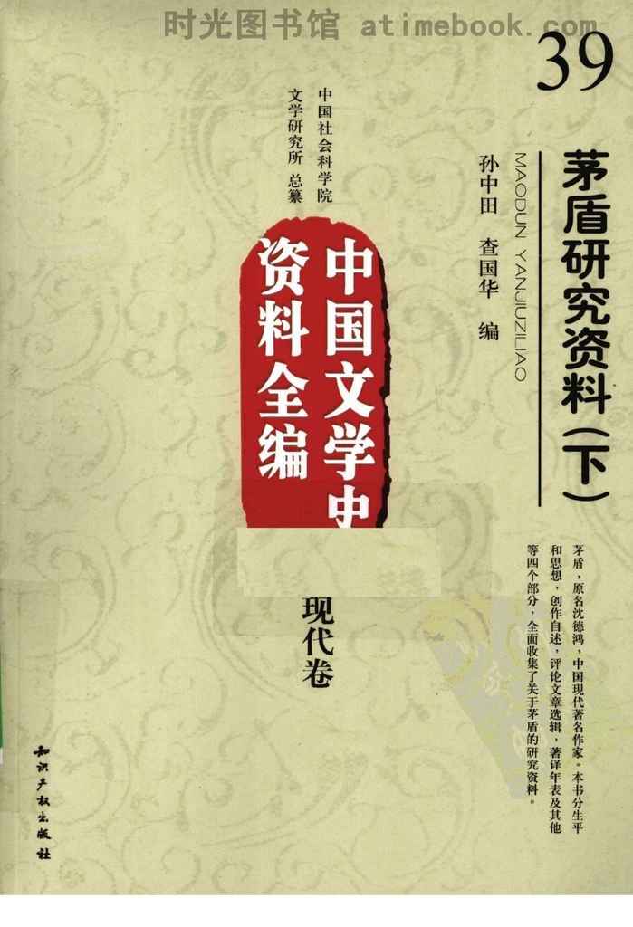 | 网盘路径:/时光图书馆珍藏系列/书籍文件/老图书/《茅盾研究资料(上)》电子版合集.db | ||