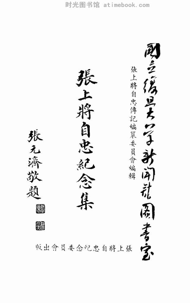 | 网盘路径:/时光图书馆珍藏系列/书籍文件/老图书/《张上将自忠纪念集》电子版合集.db | ||