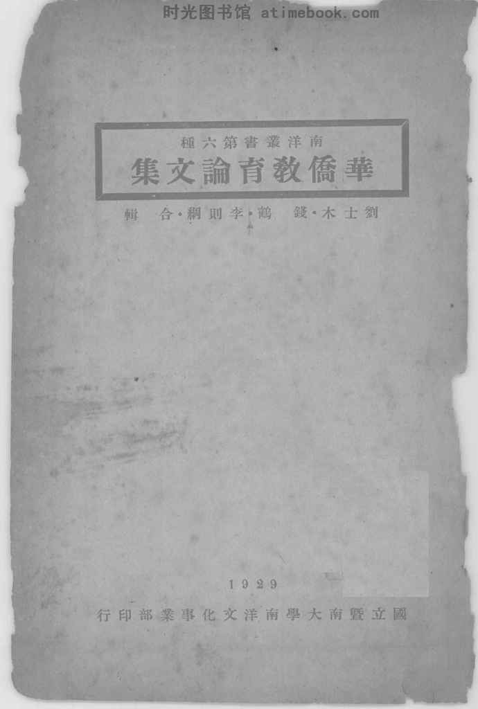| 网盘路径:/时光图书馆珍藏系列/书籍文件/老图书/《南洋丛书第6种_华侨教育论文集》电子版合集.db | ||