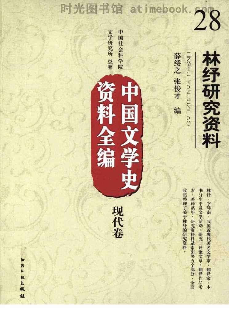 | 网盘路径:/时光图书馆珍藏系列/书籍文件/老图书/《中国文学史资料全编现代林纾研究资料》电子版合集.db | ||