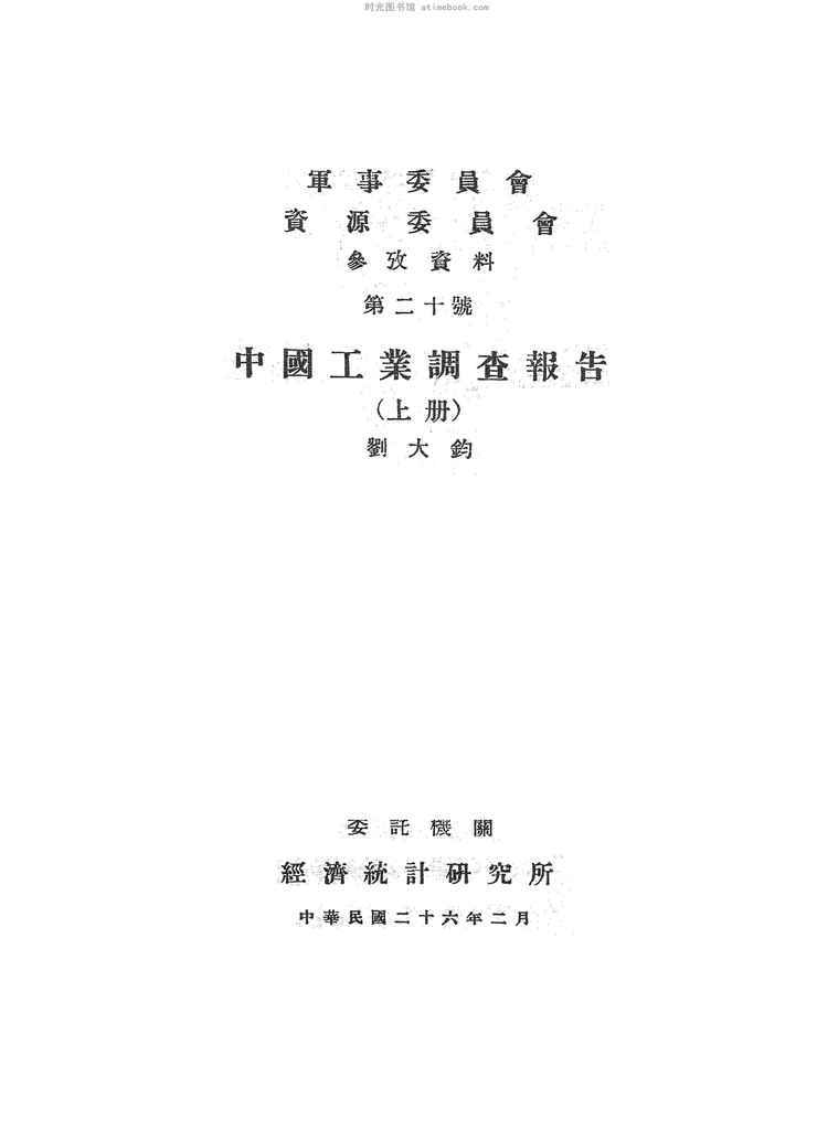| 网盘路径:/时光图书馆珍藏系列/书籍文件/老图书/《中国工业调查报告·上册》电子版合集.db | ||