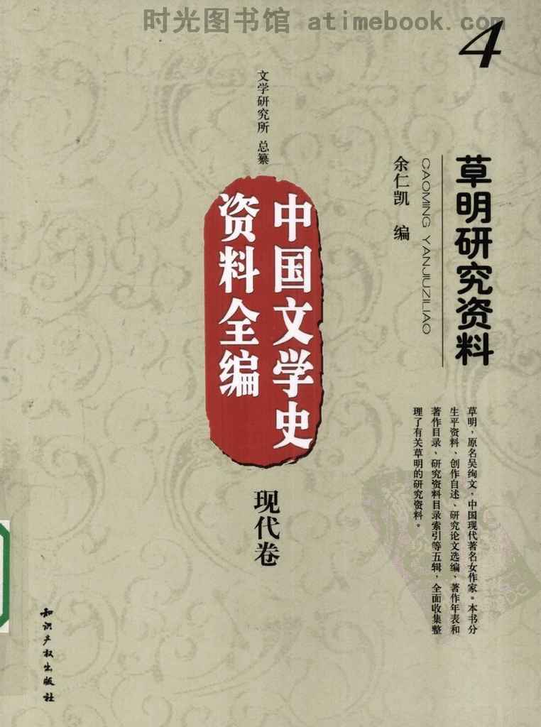| 网盘路径:/时光图书馆珍藏系列/书籍文件/老图书/《中国文学史资料全编_现代卷_草明研究资料》电子版合集.db | ||