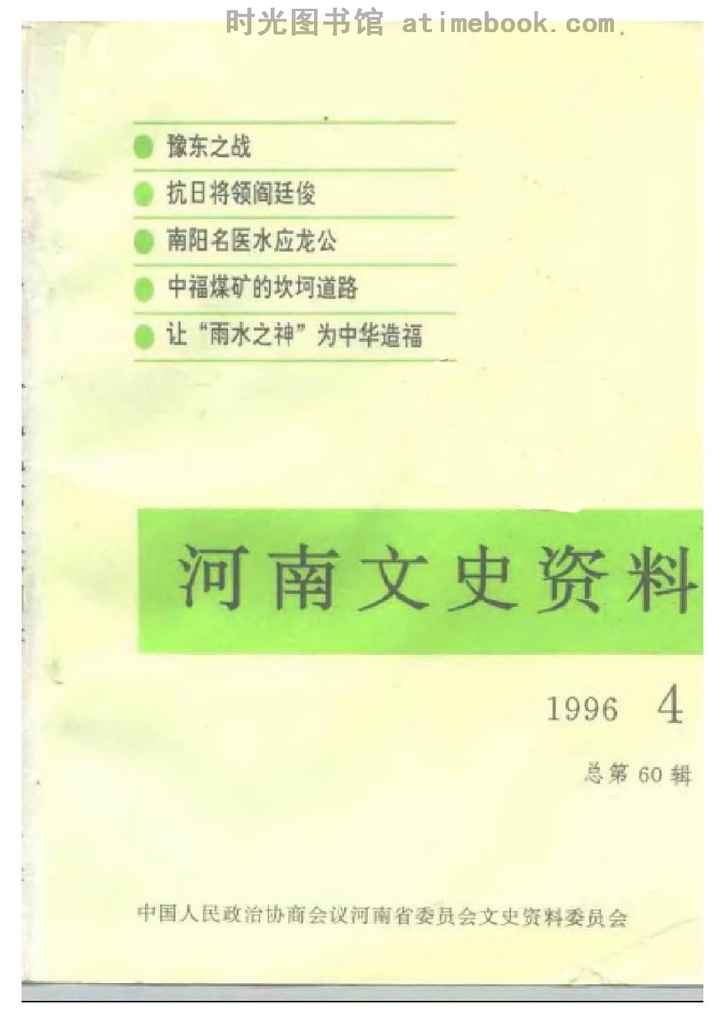 | 网盘路径:/时光图书馆珍藏系列/书籍文件/老图书/《河南文史资料_第60辑》电子版合集.db | ||