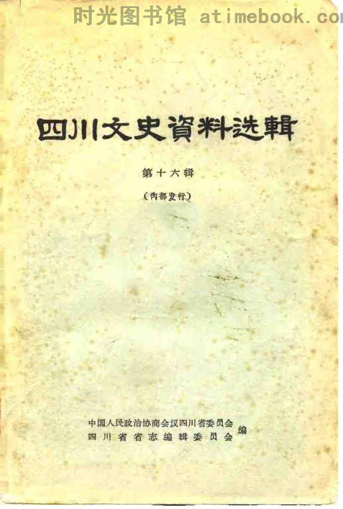 | 网盘路径:/时光图书馆珍藏系列/书籍文件/老图书/《四川文史资料选辑_第16辑》电子版合集.db | ||