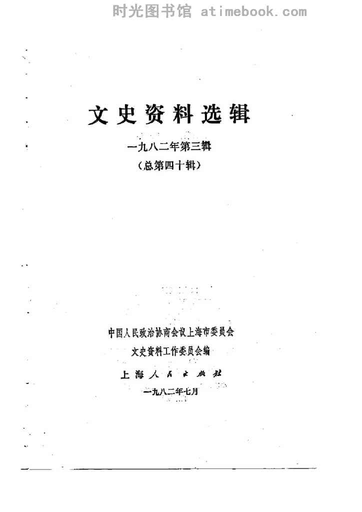 | 网盘路径:/时光图书馆珍藏系列/书籍文件/老图书/《上海文史资料选辑_1982年第3辑_总第40辑》电子版合集.db | ||