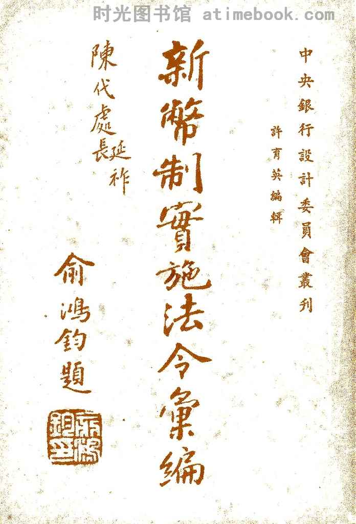 | 网盘路径:/时光图书馆珍藏系列/书籍文件/老图书/《新币制实施法令汇编》电子版合集.db | ||