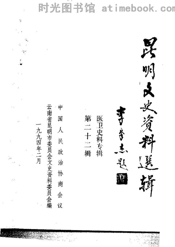 | 网盘路径:/时光图书馆珍藏系列/书籍文件/老图书/《昆明文史资料选辑_第22辑_医卫史料专辑》电子版合集.db | ||