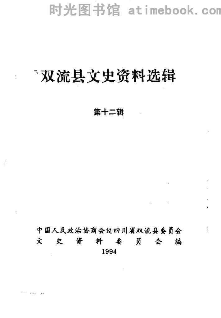 | 网盘路径:/时光图书馆珍藏系列/书籍文件/老图书/《双流县文史资料选辑_第12辑》电子版合集.db | ||
