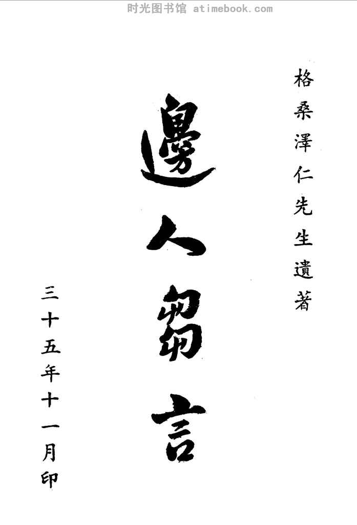 | 网盘路径:/时光图书馆珍藏系列/书籍文件/老图书/《边人刍言》电子版合集.db | ||