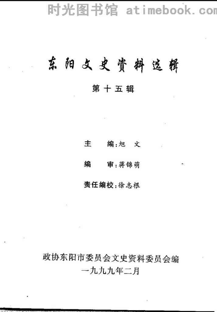 | 网盘路径:/时光图书馆珍藏系列/书籍文件/老图书/《东阳文史资料选辑_第15辑》电子版合集.db | ||