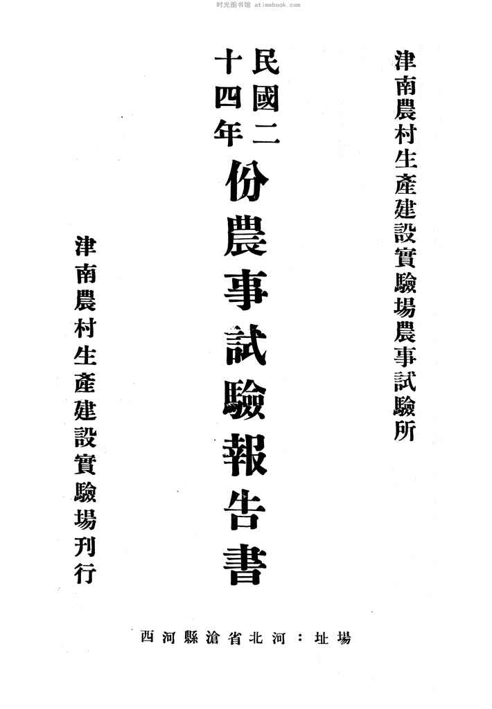 | 网盘路径:/时光图书馆珍藏系列/书籍文件/老图书/《民国二十四年份农事试验报告书》电子版合集.db | ||
