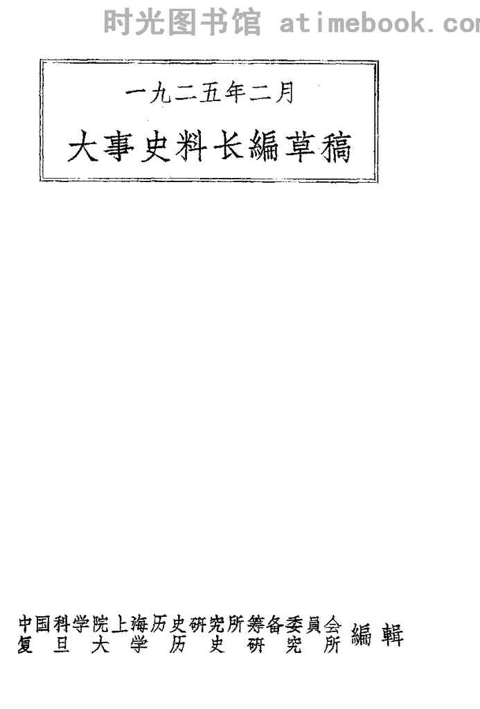 | 网盘路径:/时光图书馆珍藏系列/书籍文件/老图书/《大事史料长编草稿(一九二五年二月)》电子版合集.db | ||