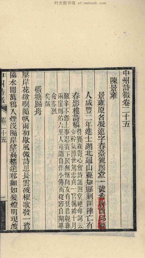 | 网盘路径:/时光图书馆珍藏系列/书籍文件/老图书/《中州诗征_卷二十五至卷二十七》电子版合集.db | ||