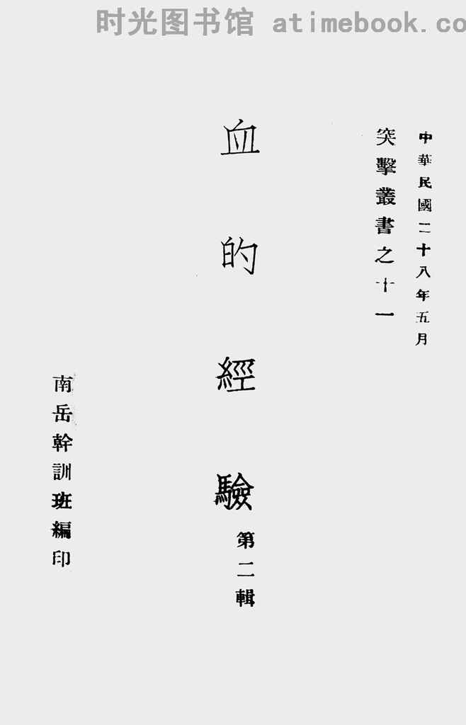 | 网盘路径:/时光图书馆珍藏系列/书籍文件/老图书/《血的经验_第2辑》电子版合集.db | ||