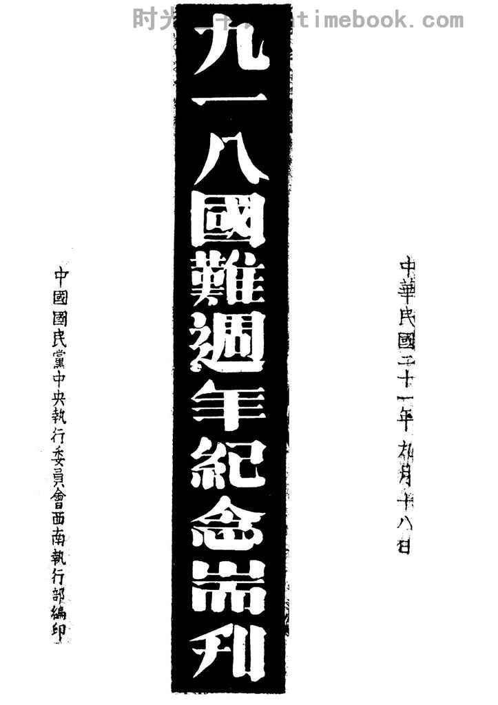 | 网盘路径:/时光图书馆珍藏系列/书籍文件/老图书/《九一八国难周年纪念专刊》电子版合集.db | ||