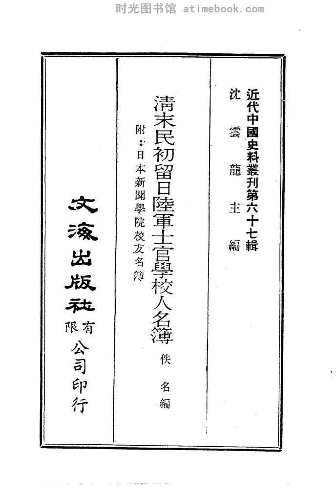 | 网盘路径:/时光图书馆珍藏系列/书籍文件/老图书/《清末民初留日陆军士官学校人名簿》电子版合集.db | ||
