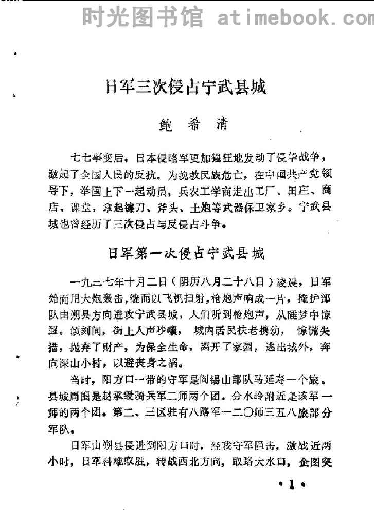 | 网盘路径:/时光图书馆珍藏系列/书籍文件/老图书/《宁武文史资料_第1辑_抗日战争专辑》电子版合集.db | ||