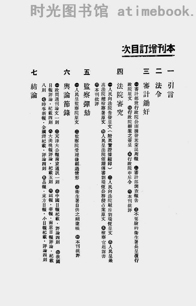 | 网盘路径:/时光图书馆珍藏系列/书籍文件/老图书/《增订刘瑞恒舞弊案专刊》电子版合集.db | ||