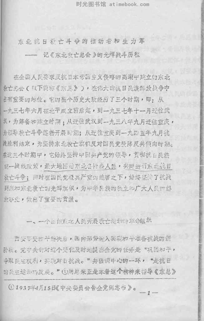 | 网盘路径:/时光图书馆珍藏系列/书籍文件/老图书/《何世芬撰写的东北救亡总会战斗历程》电子版合集.db | ||