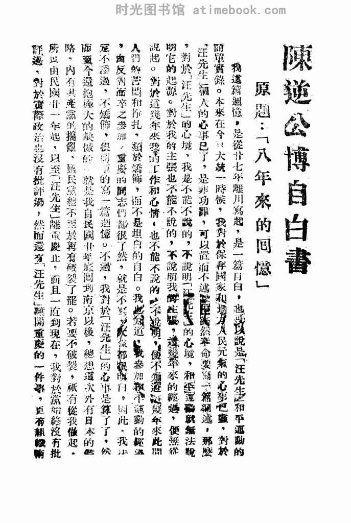 | 网盘路径:/时光图书馆珍藏系列/书籍文件/老图书/《陈逆公博自白书全文》电子版合集.db | ||
