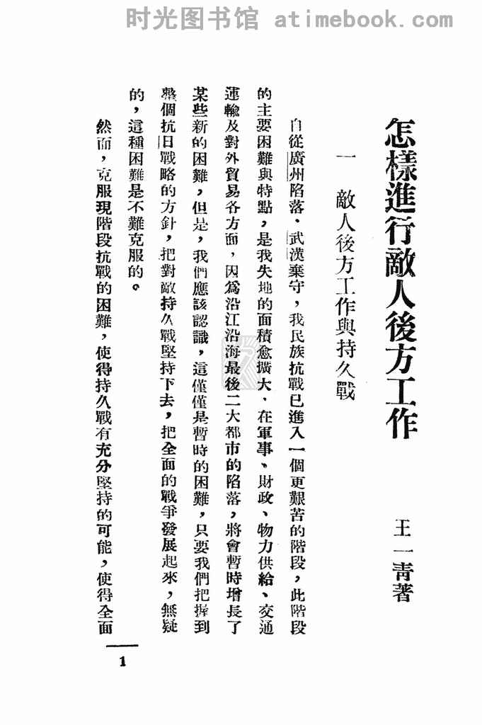 | 网盘路径:/时光图书馆珍藏系列/书籍文件/老图书/《怎样进行敌人后方工作》电子版合集.db | ||