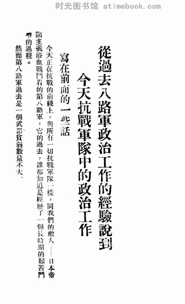文件下载 名称:《抗战中的政治工作》电子版合集 关键词:--, 出版地区:汉口 -- 文件大小:9.41 MB 原始格式:db数据库 导出格式:png 下载方式:百度网盘、夸克网盘、阿里云盘、123云盘 网盘路径:/时光图书馆珍藏系列/书籍文件/老图书/《抗战中的政治工作》电子版合集.db 提示:也支持在线观看,安装阅读器即可,无需额外下载书籍文件。 下载地址: ★阅读器★ 百度网盘 阿里云盘 123云盘 夸克网盘 内容截图:(图片有压缩,网盘下载后更清晰) 书籍获取:书籍合集 喜欢 (0)