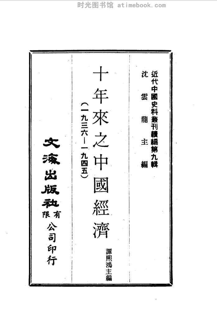 | 网盘路径:/时光图书馆珍藏系列/书籍文件/老图书/《十年来之中国经济(1936-1945)》电子版合集.db | ||