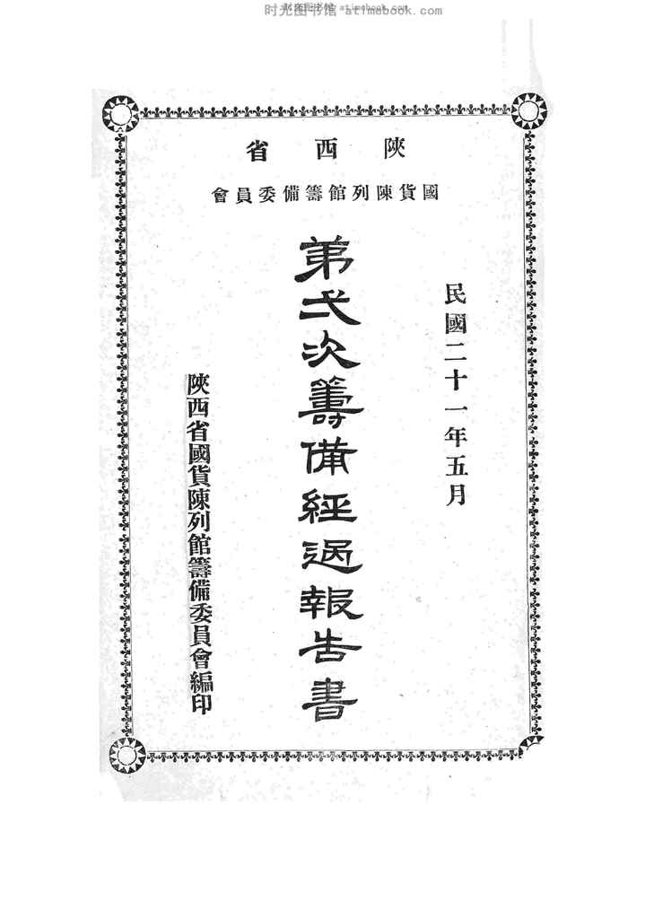 | 网盘路径:/时光图书馆珍藏系列/书籍文件/老图书/《陕西省国货陈列馆筹备委员会第二次筹备经过报告书》电子版合集.db | ||