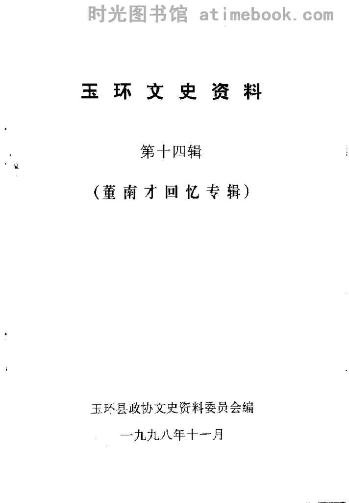 | 网盘路径:/时光图书馆珍藏系列/书籍文件/老图书/《玉环文史资料_第14辑_董南才回忆专辑》电子版合集.db | ||