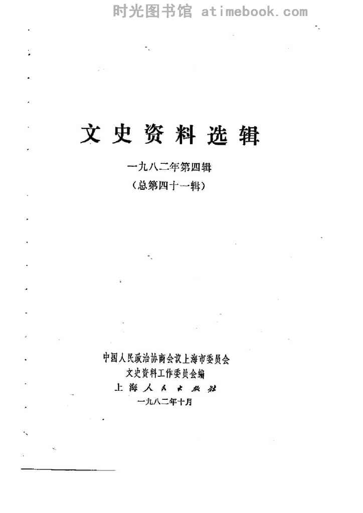 | 网盘路径:/时光图书馆珍藏系列/书籍文件/老图书/《上海文史资料选辑_1982年第4辑_总第41辑》电子版合集.db | ||