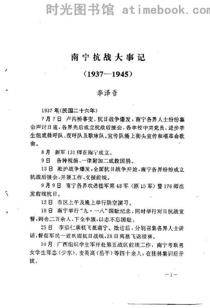 | 网盘路径:/时光图书馆珍藏系列/书籍文件/老图书/《南宁文史资料_总第18辑_(_南宁抗战——-纪念抗日战争胜利50周年)》电子版合集.db | ||
