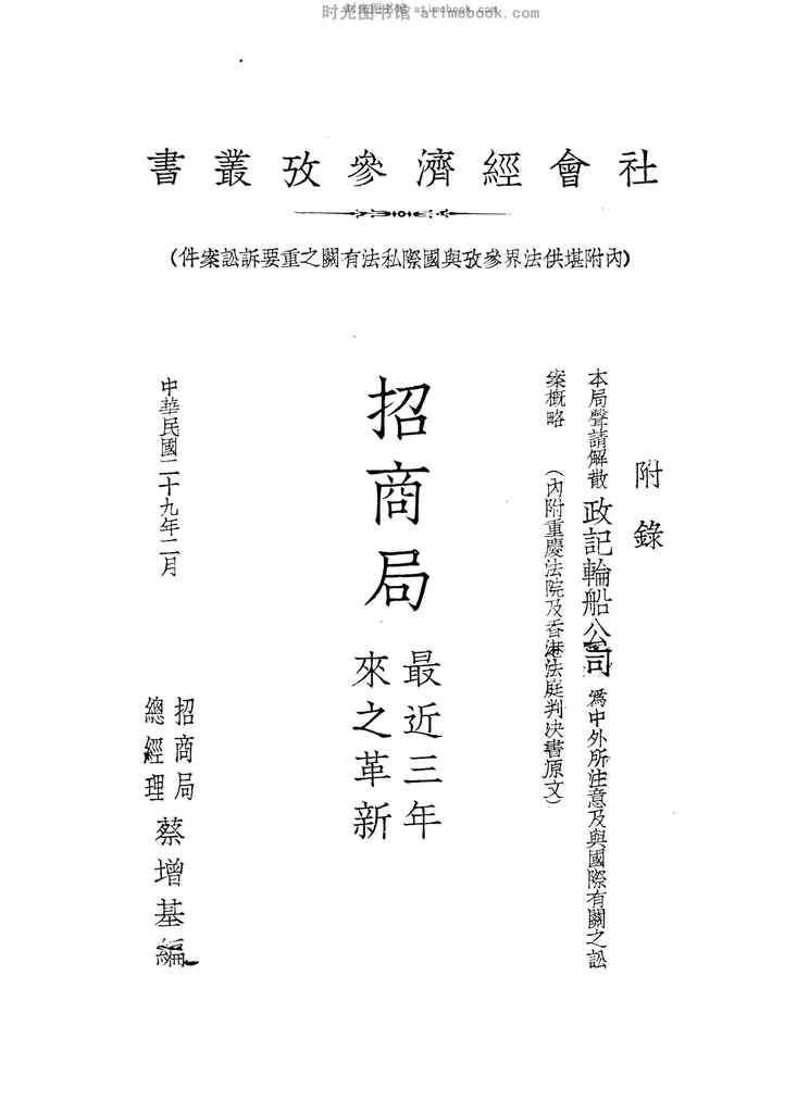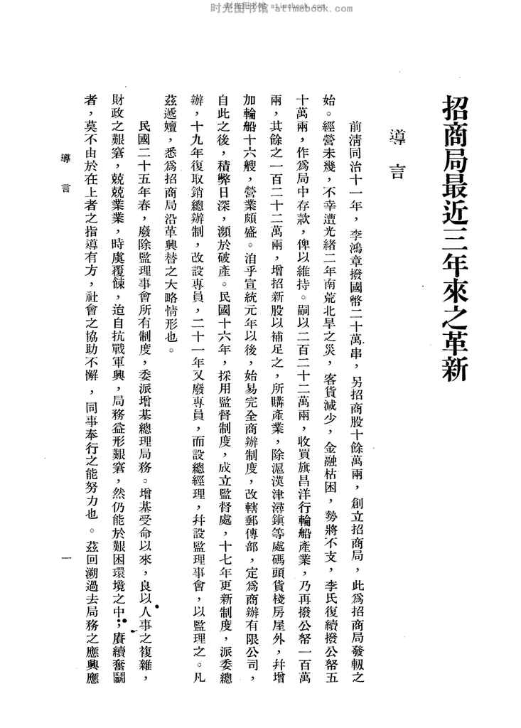 | 网盘路径:/时光图书馆珍藏系列/书籍文件/老图书/《招商局最近三年来之革新》电子版合集.db | ||