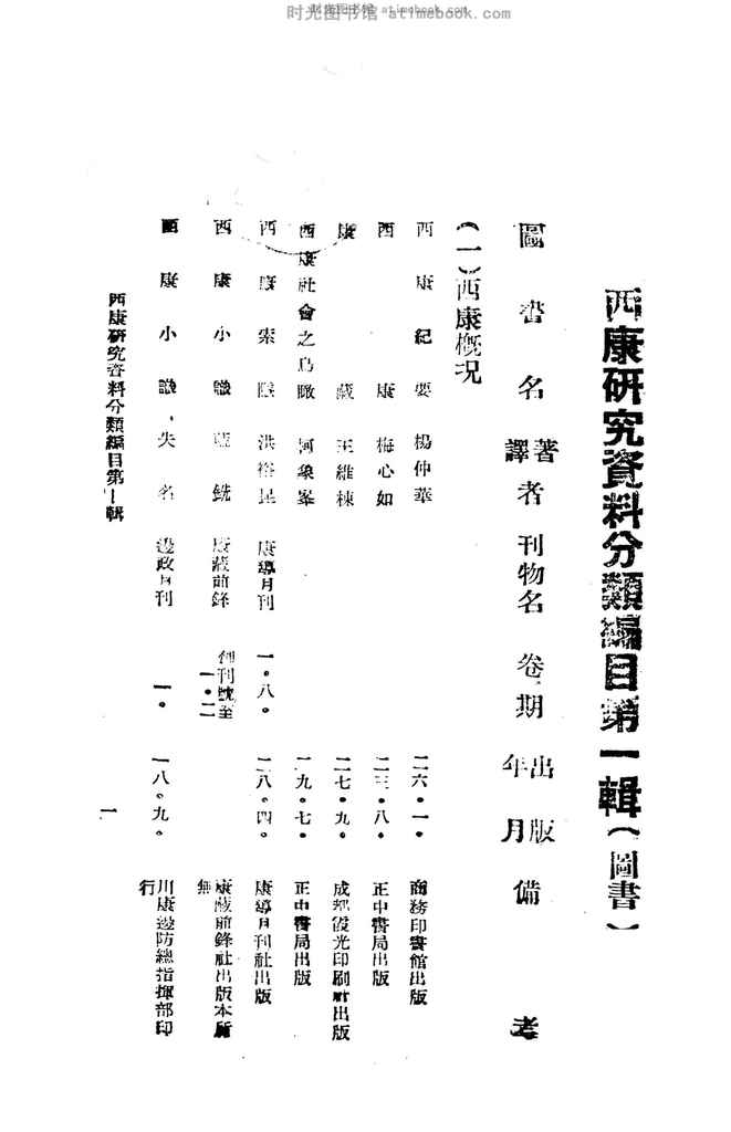| 网盘路径:/时光图书馆珍藏系列/书籍文件/老图书/《西康研究资料分类编目_第1辑》电子版合集.db | ||